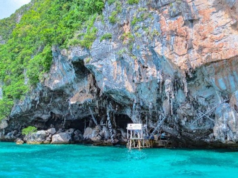 Loh Sama Bay is located on the south side of Phi Phi Lay Island. It lacks beaches and is surrounded by cliffs, seemingly discouraging access to the uninhabited Phi Phi Lay Island. The sea in this area is exceptionally deep.