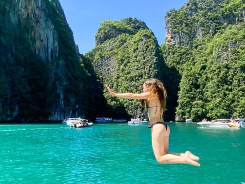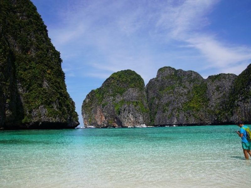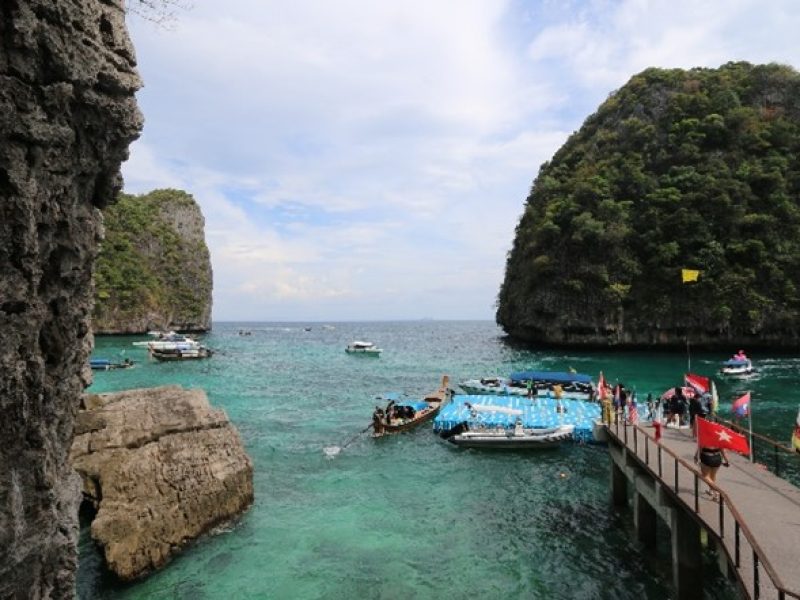 The landing at Maya Bay (Maya Beach) on Phi Phi Lay island, famous as the filming location of "The Beach. Maya Bay was originally closed for nature conservation. Enjoy the mysterious beach on an uninhabited island.